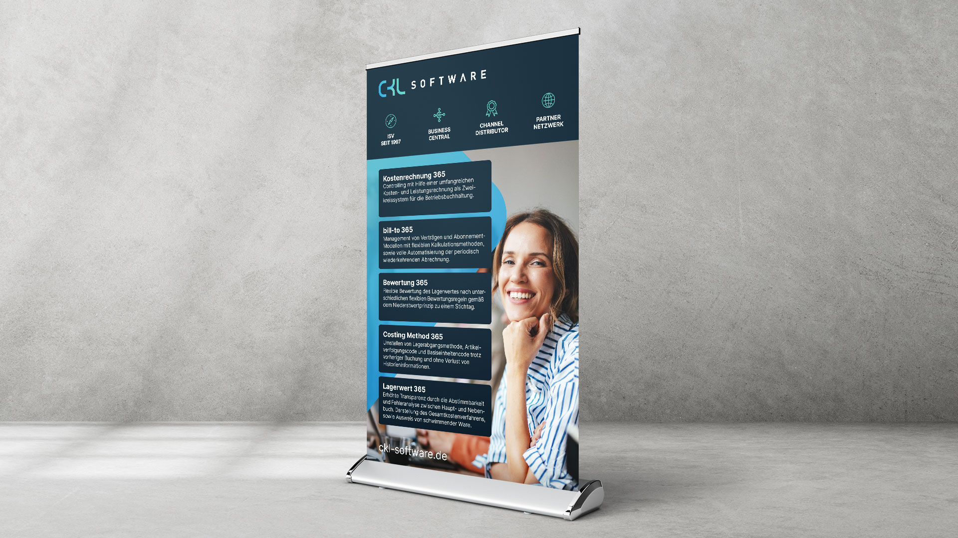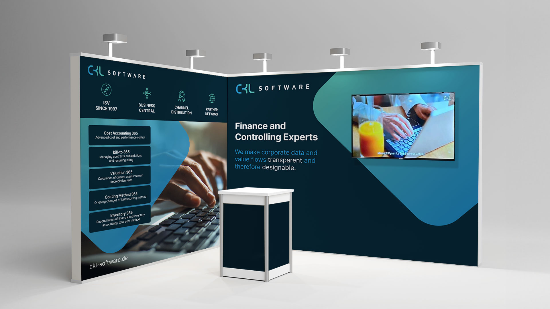 rau kommunikation entwickelt für CKL das Corporate Design und überarbeitet nach den neuen Vorgaben den gesamten Printbereich. Dieser umfasst die Geschäftsausstattung, Factsheets sowie die umfangreichere Produktbroschüre für die verschiedenen Lösungen. Als Brand- und Internetagentur begleiten wir den kompletten Relaunch des Unternehmens. Im reinen B2B Bereich unterstützen wir CKL durch die Entwicklung von Fachanzeigen im Controller Magazin. Außerdem haben wir, wie jedes Jahr, den Messestand für die Directions EMEA 2023 neu entwickelt. Die Directions EMEA ist eine jährlich stattfindende Messe, auf der alle Partner über die neuesten technologischen Entwicklungen von Microsoft informiert werden.
