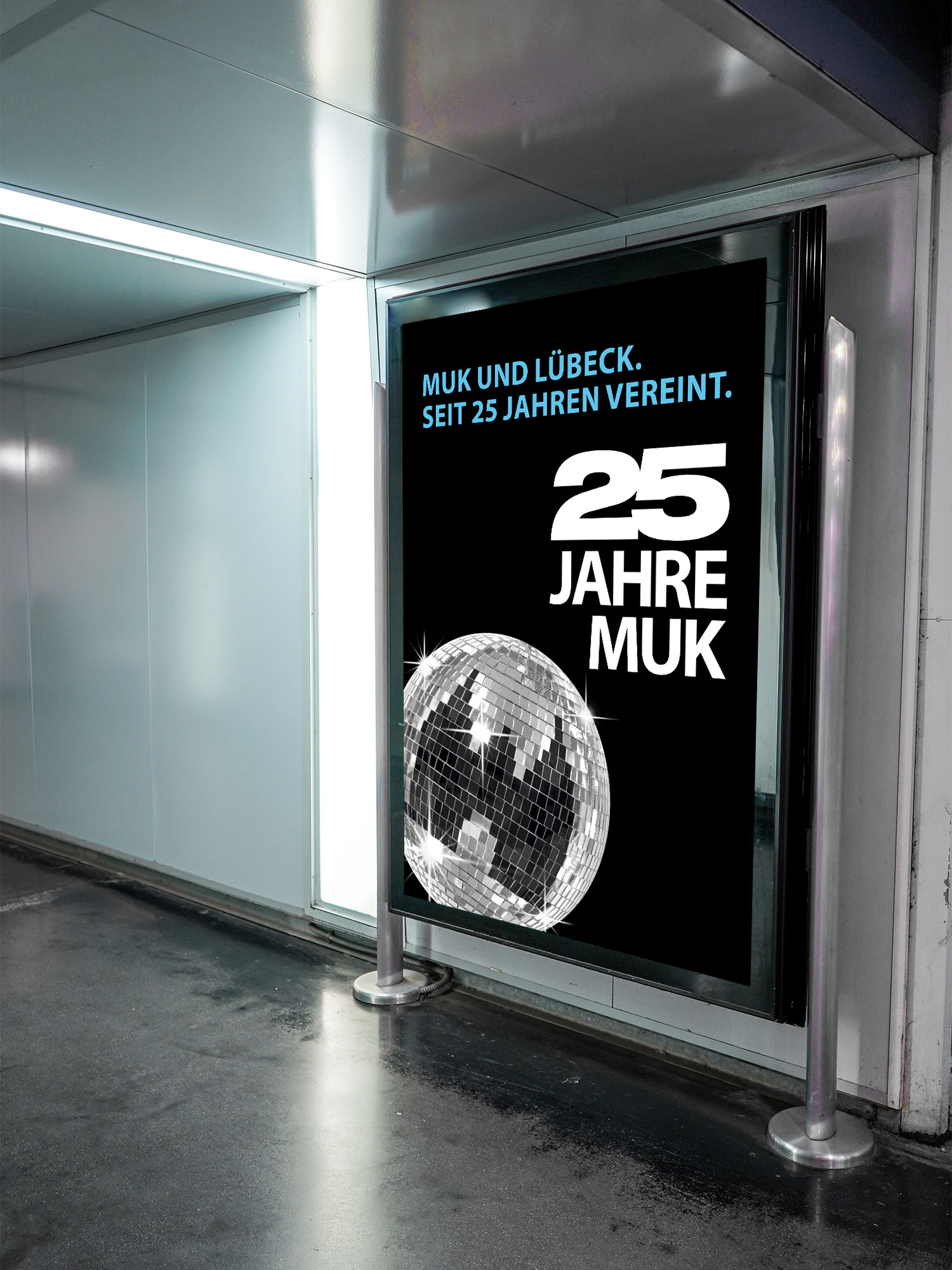 Im Bereich B2C entwickeln wir als Brand- und Web Agentur u.a. Saisonvorschauen, entwerfen Programmflyer und erhöhen die Sichtbarkeit im Stadtbild durch City Lights und Verkehrsmittelwerbung. Wir begleiten die MUK bei Facebook und Instagram durch die kontinuierliche Erstellung des Artworks. Im Bereich B2B entwickeln wir LinkedIn-Kampagnen und stellen begleitend online alle wichtigen Informationen über Hallen, Räume, Catering, Technik, Barrierefreiheit und Tagungspakete bereit.